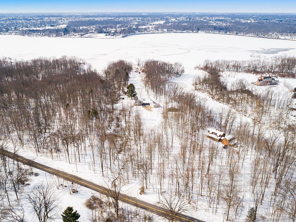 Nearly 9.5 acres of waterfront property. One of the best locations on the water. Grasslands, woods and a ravine. A gravel trail leads to the boat dock. Approximately one mile of walking and biking trails with two wooden bridges. Spacious 2 story great room with a floor to ceiling stone fireplace and a Chestnut mantel. The updated, fully applianced eat in kitchen features white cabinets with crown molding, granite counter tops and a contrasting center island with a breakfast bar. First floor master bedroom with a huge walk-in closet. 3 of 4 full bathrooms are updated with new cabinets, counter tops, mirrors, fixtures and 18'' floor tile. Work from home in your office. 1st floor laundry. Bonus room or fifth bedroom. Three car garage & 36' x55' out building. Screened in porch, deck and patio.
