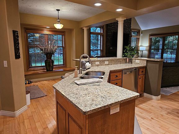 Luxury home Countertops upgraded to Granite, Floors upgrades to Tile, Bathrooms abound. New Wood Ceilings, Primary Suite upgraded with Granite Counters and Glass Shower. New Landscaping providing this inviting exterior. New Stone Floor to Ceiling Height Stonework, All Bosch Appliances in Kitchen along with new Granite Counters. New Overhead Garage Doors and Service Door. New Gorgeous Front Door to Welcome our Guests. ADT Security System can be purchased with extra cameras. Owner purchased next door Lot which is Included. HOA covers Snow Removal, Lawn Care Sprinklers Winterizing and Spring Startup. Garbage included. New Roof 2025. 5th bedroom in lower level does not have an egress window.