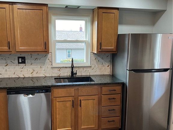 Beautiful Farmhouse style home with practically everything new . Beautiful new kitchen with granite countertops/ farmhouse sink and stainless steel range hood. New Appliances . Completely remodeled bathroom with walkin shower , vanity and fixtures . New LVP flooring throughout 1st floor and bathroom. New carpet in the 2 bedrooms. New light fixture and ceiling fans throughout along with new outlets , switches and covers in oil rubbed bronze finishes everywhere.Freshly painted white trim and walls including the basement. Other NEW items include : New Roof , New Double Hung Windows and Glass Block Windows in Basement , New Comfortmaker Gas Furnace /AC Unit , Updated Electric , New interior and Exterior Doors and handles/hinges ,Bilco Door installed at basement entry