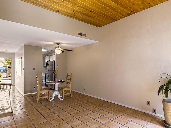 Super cute townhouse in a great and convenient location in the North Valley. Enter through the front gate and you're welcomed by an inviting and spacious courtyard. Detached 1-car garage with new door. The interior has two bedrooms and 1 bath. Many updates including new roof in 2021, new windows(2018), tankless water heater(2020) and many more features. All appliances stay including washer/dryer. The spacious living room has 15 ft tongue and groove ceiling, and wood burning F/P. Backyard access to a very private and tranquil backyard space. Must see to appreciate!