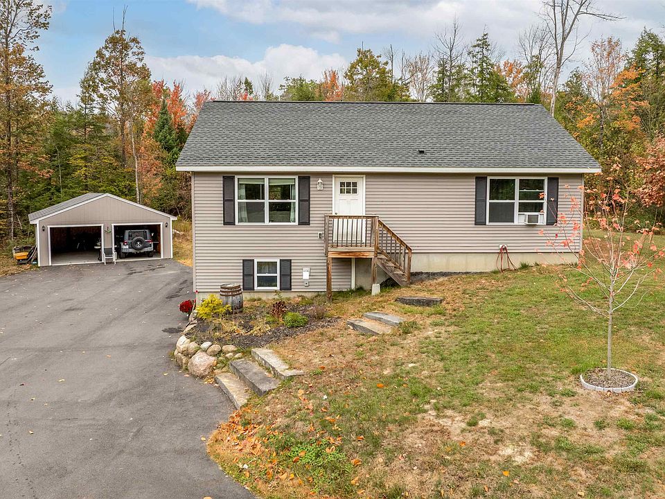 -- Move-in condition, only 5 years young, requiring minimal maintenance – just mow the lawn and plow the driveway. Features include vinyl siding, a paved driveway, a new detached garage, and a patio for entertaining. Conveniently located near Sunapee Lake and Mountain, Newport golf course, shopping, restaurants, healthcare, and community events. The finished living space boasts an open-concept, spacious kitchen with seating, and a living room, perfect for entertaining. Includes a full guest bath, two bedrooms (one with a private bath). The daylight walk-out lower level has a finished full bath, with the remaining space ready to customize for your needs, such as an additional bedroom, in-law apartment, rec room, and/or storage. Immediate occupancy is available.