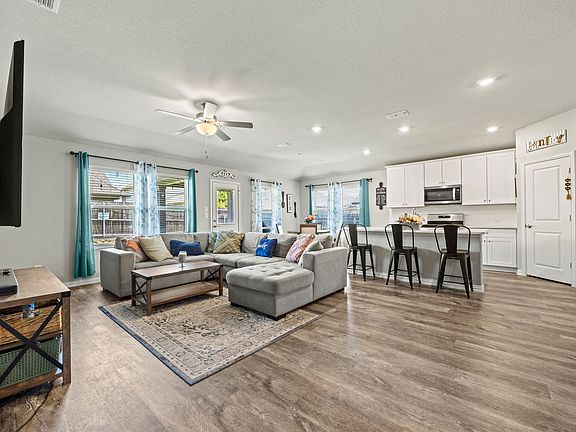This thoughtfully designed home features a convenient kitchen island that overlooks both the dining area and the spacious great room—perfect for entertaining or everyday living. The kitchen is outfitted with elegant white cabinets, stunning white pearl quartz countertops, and stylish smoky oak EVP flooring, all complemented by warm grey carpet throughout. This property is in a serene setting surrounded by wooded open space and peaceful creeks, the Brookside community offers exceptional amenities including a community pool, playground, and scenic creekside walking trails. Each bedroom in this home boasts a private ensuite bath, providing comfort and privacy for all. The versatile fourth bedroom can easily serve as a home office or guest room.Built with energy-efficient features, this home promotes a healthier, quieter lifestyle while helping you save on utility bills.