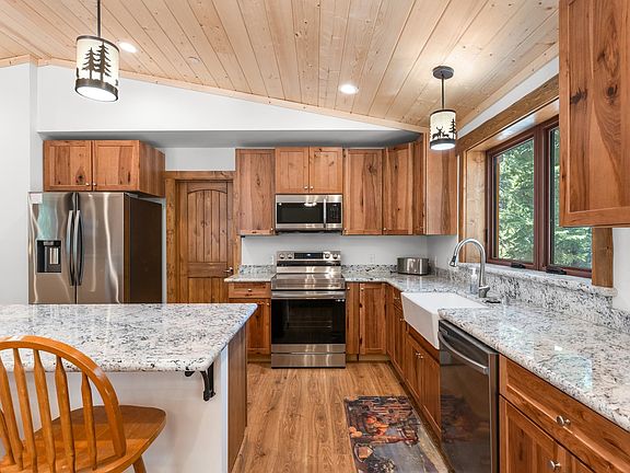This stunning brand-new home on Lake Tahoe’s coveted West Shore offers a rare blend of craftsmanship, design, and location. Thoughtfully built by a long-time local Tahoe builder, the 4-bedroom, 2.5-bath residence features a spacious family room, separate wet bar, and a finished 2-car garage, all designed for comfortable year-round living or luxurious vacation use. Hand-hewn entry rails made from trees on the property welcome you into a warm, mountain-modern interior highlighted by soaring pine vaulted ceilings, granite countertops, tile floors, and custom designer bathrooms and lighting. The exterior showcases classic Tahoe style with cedar siding and corrugated metal accents, upper and lower decks(with connecting stairs), granite wainscoating, and expansive south-facing picture windows fill the home with natural light and frame the surrounding forest. This home is ideally located just a short walk to the Chamberlands Beach and Pier, as well as the trails of Sugar Pine Point State Park. A scenic bike route runs from your doorstep all the way to Meeks Bay and back to Tahoe City, making it easy to enjoy all the natural beauty and recreation the West Shore has to offer. With its exceptional attention to detail, high-end finishes, and unbeatable setting, this home is a true Tahoe gem. Seller may consider owner financing with 33% down 5.75% for 5-7 years with 30 year amortization