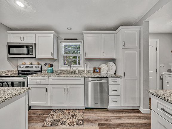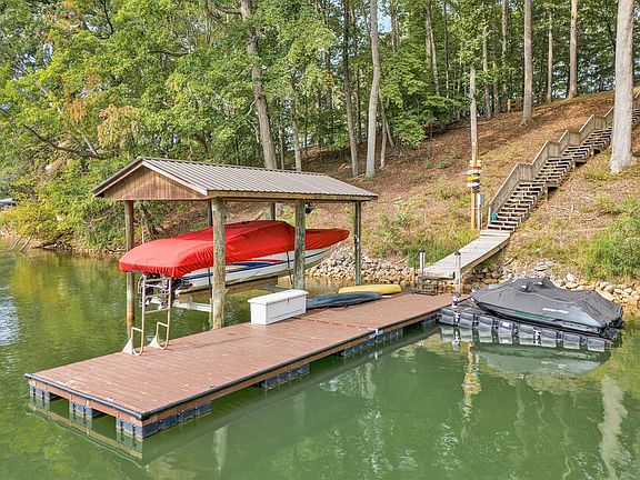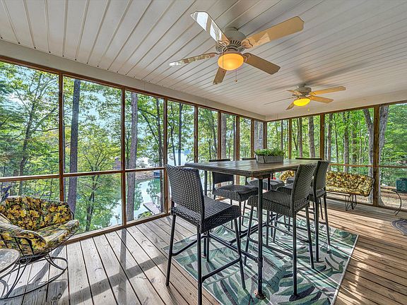 Newly renovated home with approximately 117 feet of shoreline and a spectacular view. This fabulous waterfront home has 3 BRs and 2 Baths and was completely renovated in 2022 with new roof, doors, windows, siding, HVAC, kitchen, baths, and floors throughout)! Screened in porch on waterfront is perfect for entertaining! Split floor plan (primary with full bath on one side, 2 bedrooms with full bath on other side). Features include an open living room, kitchen, and dining area. Deep water dock has covered boat slip with floater that was recently updated. Jet docks do not convey.'' Gorgeous Park-like setting nestled in a wooded setting with fabulus views!