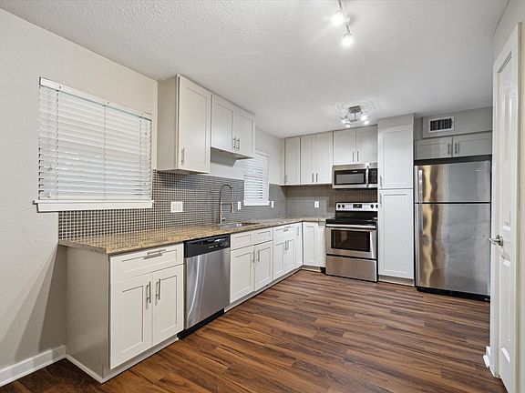 Beautiful 2 bedroom in small gated community in Houston Heights. Gated covered parking, laminate wood floors, large kitchen with stainless steel appliances and granite countertops. Washer/dryer in unit and central air/heat. Close to local boutiques and parks.