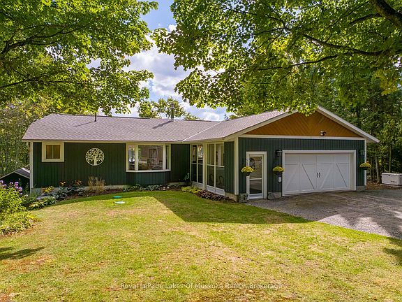 Discover your dream year-round waterfront home on the pristine shores of Clear Lake, celebrated for its crystal-clear waters. Perfectly positioned at the end of a quiet cul-de-sac with minimal traffic, this property offers a peaceful escape. Located in Big Bay, the setting is ideal for waterskiing, kayaking, canoeing or simply enjoying tranquil pontoon rides. Extensive glass infinity decking, safe steps to the lake, sandy shoreline & shallow entry make lakeside living enjoyable for all ages. Substantial recent landscaping featuring granite accents, plantings & curated gardens adds to the beauty. Step inside to find a meticulously renovated interior with beautifully finished living spaces on two levels. The versatile layout includes 3 bedrooms plus an office & 4 bathrooms, offering comfort & flexibility for family & guests. The elegant main floor primary suite is a private sanctuary, featuring its own walkout balcony & deck overlooking breathtaking lake views & a luxurious 4pc ensuite. At the heart of the home, the cozy double-sided fireplace enhances the ambiance of the sunlit living room, seamlessly connecting to the adjacent dining area and gorgeous kitchen with handy island. An office & 3pc bath complete the main level. The lower level boasts a spacious family room with walkout, wet bar/entertainment centre, 2 bedrooms & 2 bathrooms-perfect for entertaining or accommodating visitors. An added bonus is the brand new septic system installed in August, 2025. Car enthusiasts & hobbyists alike will love the heated parking for up to 4 vehicles, including a spectacular man-cave/garage/workshop with custom cabinetry, durable flooring & a large loft for storage. Located just minutes from Huntsville & Novar, you'll enjoy the perfect balance of nearby amenities & the peace of lakeside living. With marvelous lake views from most principal rooms & abundant outdoor spaces to gather, relax, or entertain, this property offers the ideal blend of modern comfort & natural beauty.