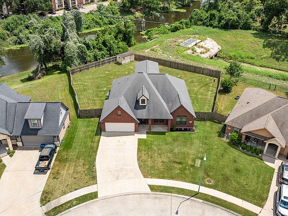 Welcome to your dream home on Oyster Creek! This beautiful 4-bedroom, 2 full bath, 2 half bath property sits on a large cul-de-sac lot with stunning water frontage views. Step inside to find an inviting foyer, a dedicated office with French doors, and a spacious open-concept living area perfect for entertaining. The kitchen features granite countertops, rich cabinetry, stainless appliances, and a center island. The spacious living room and grand kitchen area make the perfect place to entertain. The oversized primary suite boasts tray ceilings, sitting area, and spa-like bath with dual vanities, soaking tub, and walk-in shower. Enjoy evenings on the huge covered patio or from the upstairs balcony, both overlooking the expansive backyard and peaceful creek views. With a functional floorplan, ample storage, and the perfect blend of comfort and style, this home is ready for its next chapter.