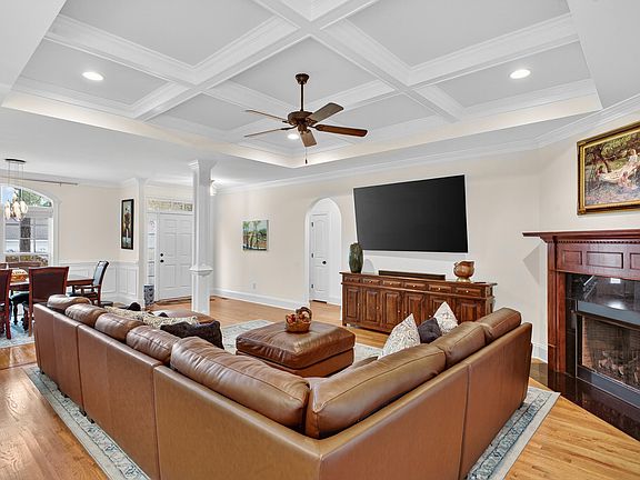 Designed for comfortable living inside and out! Light natural colors, Hitchcock ceiling, arched doorways, crown molding, baseboards, hardwood floors and so such more! The greatroom displays a corner gas fireplace, formal dining area is accented with chair rail and large picture-halfmoon window. Walk into the cheerful kitchen with plenty of cabinets, pullout stainless shelving, granite countertops, pantry with stainless pullouts, stone-tile backsplash, snack bar and spacious breakfast area. The owner's suite has recessed lighting, trey ceiling, and windows overlooking the back patio and pool. The primary bath features double sinks nicely separated with counter space, tub and separate glass walk-in shower. Two bedrooms, two hall closets and full bath are on the opposite side of the home. Laundry room is just off kitchen abd features a farm-style sink. Completing the first floor is a spacious all season room with stamped flooring. On the second level is a bonus room/4th bedroom, full bath, a wonderful XXL closet, and a floored attic for easy storage. Step outside to your private paradise featuring a sun deck, grilling patio, in-ground gunite saltwater pool, and veranda with a recently completed permanent roof. Fenced backyard. Two-car garage. Many updates have been completed between 2022-2025 inc new roof 2025.
