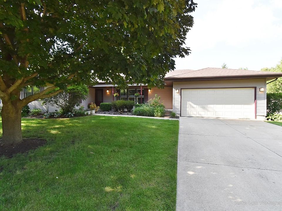 Spacious ranch home located close to Lions Park and downtown Elburn! The southern exposure covered front porch welcomes you right in! The large living room has a wall of windows, recessed lights and fireplace with gas logs, marble surround and wood mantle! You will absolutely love the remodeled eat-in kitchen with 42" cabianets (some with glass fronts), laminate hardwood floors, quartz c-tops, tile backsplash, under cabinet lighting, recessed lights, SS Viking stove & wine fridge, Jenn-Air refrigerator, Bosch dishwasher & GE Profile microwave, island/breakfast bar and sliding glass door that leads out to the deck. The oversized primary bedroom suite offers laminate hardwood floors, Haiku ceiling fan, walk-in closet with custom organizer, wall closet and private bath with quartz top vanity and gorgeous shower with custom tile surround and glass door. Two secondary bedrooms, one with carpet, one with laminate hardwood floor and ceiling fan/lights. Full hall bath with updated vanity with sold surface c-top and shower/tub with glass doors. Main floor laundry room with cabinets and utility sink. There is more space waiting downstairs in the finished basement boasting built-in wall of desks, storage galore, office, workout space with sauna and adjacent full bath. There are two sump pumps, one with battery back-up. Solid 6-panel wood doors throughout. Enjoy time spent outside on your paver brick patio and deck overlooking professionally landscaped yard with shed! Come and enjoy country living with all the modern amenities close by!