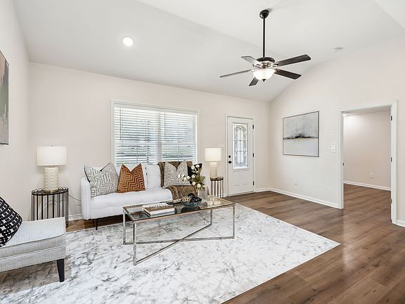 This delightful home welcomes you with a cozy covered porch. Step inside to find a bright and airy space including a vaulted ceiling. The kitchen, an additional place to gather, has stainless steel appliances and a sunlit eat-in area - great for entertaining and hanging out. The primary bedroom features a walk-in closet and a full bathroom with a double vanity sink. Outside, a 12x12 wood deck invites relaxation. This charming home includes a dedicated laundry room for added convenience. Enjoy everything this three-year-young home has to offer.