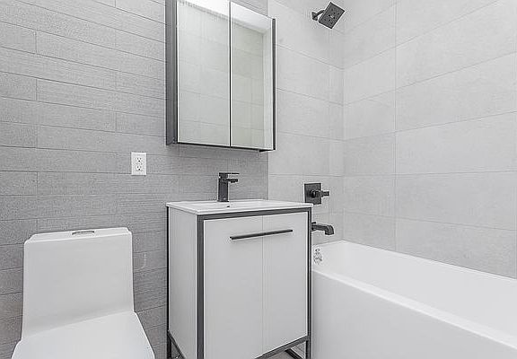 Brand new multi family Gorgeous 1 bed/ 1 bath and HUGE living room. No Fee! Prime location! Sun-filled apt everything is brand new! Privacy balcony! Spacious living area! S/S kitchen including a microwave. Nice size bedroom with closet space. Beautiful modern bathroom with deep soaking tub. Recessed lighting throughout. Stylish Hardwood floors. Guarantors accepted. No Fee.