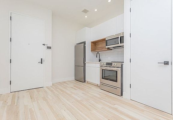 Brand new multi family Gorgeous 1 bed/ 1 bath and huge living room. No Fee! Prime location! Available Now!! HOT UNIT WILL GO FAST Sun-filled apt everything is brand new! Privacy balcony off the living room! Spacious living area! S/S kitchen including a microwave. Nice size bedroom with closet space. Beautiful modern bathroom with deep soaking tub. Recessed lighting throughout. Stylish Hardwood floors.