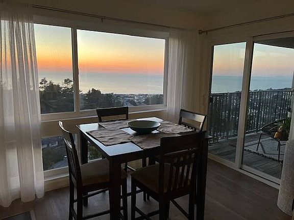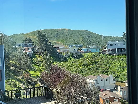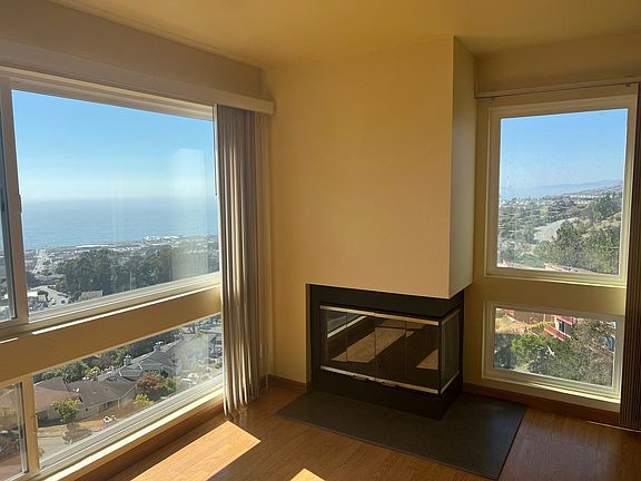 Spectacular OCEAN VIEW, 1 bedroom TOP FLOOR CORNER UNIT in a quiet and unique 8-unit building. Hardwood floors, updated kitchen and appliances. Living room and bedroom sliding glass doors open to private deck overlooking ocean view. From your private deck, enjoy many miles of coastal view, from Marin Headands in the north. Quiet, peaceful building. Indoor parking in attached, secure garage included. Secured storage unit included. Laundry on-site. More pictures coming soon. Available August 15. 12-month lease. Sorry, no pets. Owner pays water and recology, trash and recycling