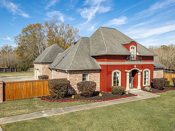 Rare find in Feliciana Crossing! Only a few minutes from Zachary. This open concept 4 bedroom, 4.5 bathroom stunner is not lacking any detail. You walk in and see beautiful pine wood floors running throughout the living area with triple crown molding in the dining room, laundry room, and kitchen area. The living room flows openly to the kitchen area where there is beautiful slate tile flooring, granite countertops, a 48" DCS 6 burner with grill range, and a built-in ice maker. Off the kitchen area you will find a wet bar with an installed wine cooler. The master bedroom is very spacious and features an ensuite bathroom with double vanities, a walk-in closet, separate shower, and a huge Kohler overflowing tub. If you love to entertain then this is definitely the home for you! The media room upstairs will WOW you with all of the space and amenities. It has a full bath, a wet bar, and additional space for an office or even a fifth bedroom! The media room also has a projection screen with system and surround sound installed. Outside you will be greeted with an outdoor kitchen, large covered patio, and a three car garage with plenty of storage! This home has been well maintained and is ready for its new owners!