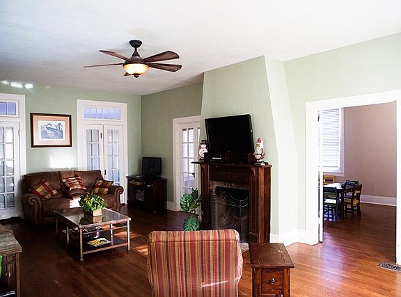 This historical home features beautiful hardwood floors, light filled rooms, crown moulding, and beautifully renovated kitchen. A double fireplace graces both living room and study, and an oversize cedar closet upstairs is large enough for clothes of all seasons. Outside there is a sprinkler system, security gate for the 2 car carport and a lovely deck for early morning breakfast and sunset drinks in the evening. A privacy fence ensures a secluded yard,and there are even sturdy concrete floored kennels for the pets. Gracious living at its finest. House may also be rented. Rent: $1400 per month. Owner financing available and house may be rented for $1400 per month.