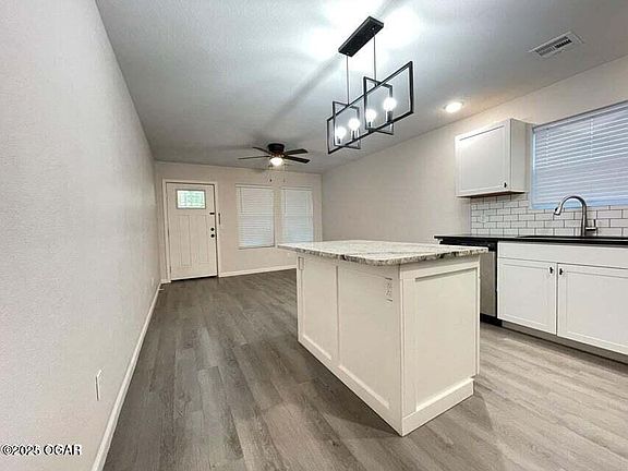 For lease, not for sale. Welcome to modern duplex living at its finest! This inviting 3-bedroom, 2-bathroom home in North Joplin features an open concept living and dining space flooded with natural light, plus a thoughtfully designed eat-at bar perfect for meals and entertaining. Outside, enjoy a covered patio and fully fenced backyard ideal for pets and families. Professional lawn care is included, so you can skip the yard work and enjoy everything this exceptional Joplin location has to offer. No smoking, no vaping. Small pet considered with refundable pet deposit and monthly rental fee. Subject to an acceptable credit report. $50. No cash accepted. Approval is required before showing. Available November.
