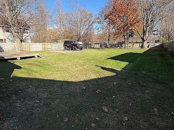 This 3 bedroom 1 bathroom home has has a spacious living room that leads into the open kitchen layout. There is a huge yard for dog(s) to play on and a perfect deck to relax on or entertaining with family and friends. There is also an additional cement platform than can be used for many activities or additional seating area and a shed for outdoor storage. An attached garage and attic gives more space for storage or parking inside. There is a bonus of a heater in there for the cold winter days if you want to hangout in the garage.