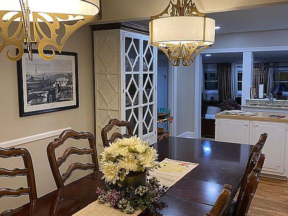 Two large family rooms, two large eating areas a main dining area in a breakfast area five bedrooms three full baths