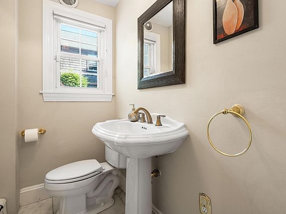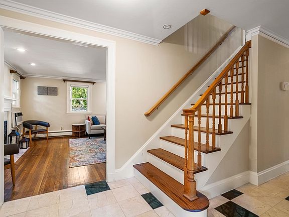 Nestled on a charming corner lot, this lovely colonial home exudes timeless elegance. Once inside, discover high ceilings, & gleaming hardwood floors. The large foyer leads you into an inviting living room with a fireplace with marble surround. The family room is off the living room and has outdoor access and w/w carpeting. There is a half bath with a pedestal sink. The stunning kitchen is a true chef's delight, with an abundance of cabinetry, sleek SS appliances, and granite countertops. It is large enough for a generous-sized table and has outdoor access to the entrance of the two-car garage. The large dining room with chair rail completes this floor. The second level has 3 bedrooms, a large primary bedroom, a full bath with a pedestal sink, and a fourth bedroom or office. There is a large finished lower level with a family room, cedar closet, laundry room, and full bath. A finished attic offers extra storage. There is a fenced yard and a lovely patio.