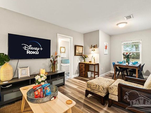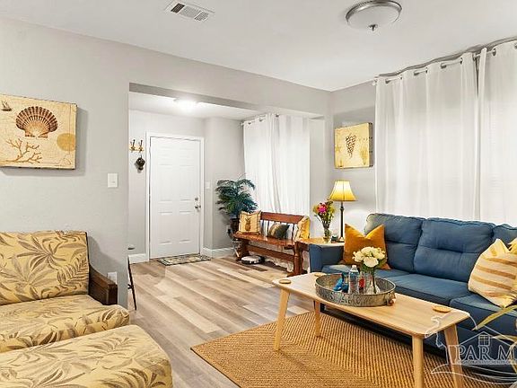 Fully Furnished Turnkey Opportunity! This well appointed small two bedroom home is right off of Navy Blvd with easy access to downtown, NAS, and Corry Station. Has been operating for 2 years as Short Term Rental on Airbnb. Gross Receipts over 40K Annual. Excellent return for the investment dollar or you can move right in to an affordable housing situation under 200k without having to do major renovations. Really cute and low maintenance/upkeep. Brand New Waterproof Laminate Flooring installed 2023. Home was fully updated in 2020 - new roof/hvac/floors/paint/kitchen etc. Both Bedrooms feature Queen Beds. Compact but very functional layout. Laundry & Storage off back door/covered carport. Large front and back yards with mature trees. Plenty of space for parking and no HOA restrictions. Neighborhood features a nice park in walking distance with water access to bayou. Close to boat launches and convenient to beaches/freeway. MDR Zoning allows for an additional accessory dwelling so you can expand in this location if you choose. Quality furnishings all convey as-is. Seller can help transition you into running the rental if you'd like.