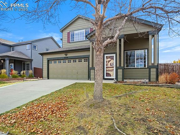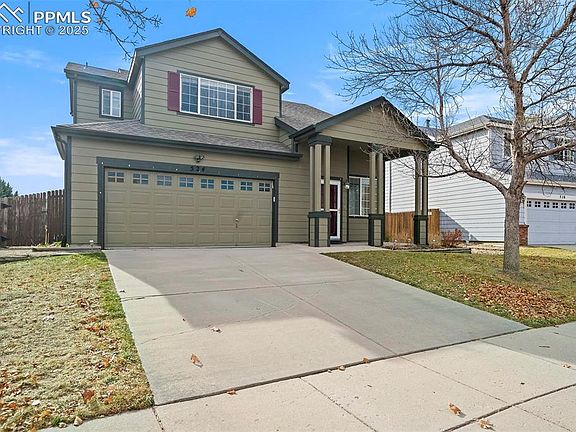 Welcome to this lovely two-story home located in the Villages at Sand Creek a vibrant sub-division in Colorado Springs! This residence is in excellent condition and boasts a beautifully landscaped, fully fenced yard creating an outdoor area perfect for relaxation and entertainment. The main level features gorgeous natural bamboo wood flooring and brand-new carpet throughout the home, enhancing the warm and inviting atmosphere throughout the living spaces. The spacious kitchen is equipped with stainless steel appliances, ample cabinetry, and generous counter space, seamlessly opening to the cozy family room, which includes built-in shelving and a charming gas fireplace. Upstairs, you’ll find three well-appointed bedrooms filled with natural light, along with two full bathrooms and a convenient laundry area. Step outside to discover an expansive backyard featuring a sprinkler system and a brand new massive concrete patio providing ideal spaces for outdoor dining and gatherings. The exterior of the home has a nice front porch enhancing its curb appeal, and additional features include central air conditioning for year-round comfort. Located in a wonderful community with easy access to parks, schools, shopping, and dining, this remarkable home combines modern amenities with a charming atmosphere, making it the perfect place to create lasting memories. Schedule your private showing today and experience the lifestyle that awaits you!