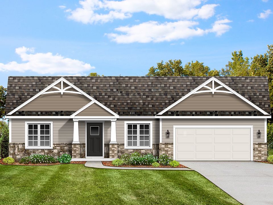 This carefully designed 1450+ square foot ranch features three bedrooms, two bathrooms, and a spacious two-car garage, (3 car garage also available). This open-concept floor plan has a beautiful kitchen complete with built-in cabinetry, a large island, and dining nook. The soaring great room and adjacent foyer provide a lovely entrance into this beautiful home, made even more luxurious with a cathedral ceiling. Luxury vinyl plank flooring in main spaces including the kitchen, the dining room, the great room and the foyer adds even more elegance to this home. The master suite features a spacious walk-in closet, with an en-suite bathroom. With craftsman detailing throughout and exterior stone this exquisite design will delight any buyer. The front porch and back deck/patio offers a place outside to enjoy the sunshine, and weather. Schedule your private showing today!