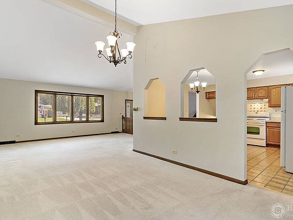 This custom split level is located on a quiet street. When this home was originally built it was expanded by 2 feet on 3 sides. The living room and dining room offer a vaulted ceiling. The eat-in kitchen features access to the patio. The primary bedroom has a private bath featuring a walk-in shower. The other two bedrooms are oversized with nice closets. The oversized family room boasts a brick gas fireplace. The utility room offers plenty of storage. The roof was replaced 11 years ago. The 1st and 2nd level carpet is new and the entire home is freshly painted. There is also an exterior shed to free up the heated and fully finished garage. Bring your decorating ideas and make this place yours. The property backs to the Songbird Slough Forest Preserve for additional privacy.