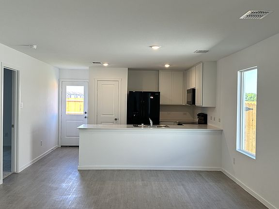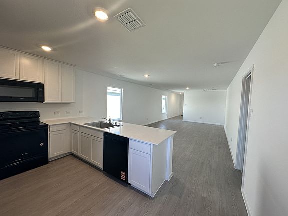 Carpet in the bedroomsQuartz countertopsDurable vinyl flooringSleek black appliancesAmple cabinet spacePrivate fenced backyard