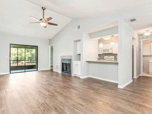 This 2/2 condo offers over 1139 square feet of living space, second floor unit, split floor plan, volume ceiling, granite countertops, laminate flooring, fireplace, screened in balcony, small storage unit and one covered parking space. Rent includes trash, water, sewer, and pest control. The community features a recreation room, pool, basketball court, and tennis court.CALL TODAY FOR SHOWING Owner pays for water , Renter is responsible for the gas and the electric . Deposit and first month rent due at signing . No smoking allowed .