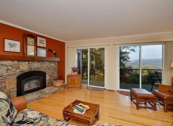 LIFE WITH A VIEW! REMODELED Condo plus BREATHTAKING VIEWS of the Pisgah Parkway National Mountains. 5 Mins from Brevard center is this hidden gem of a 4-unit Condo cluster perched on a ridge. 2 BR/2BA split plan, Hardwood floors throughout, built-ins & storage galore. Maple Kitchen cabinets, Solid surface counters. Heated sunroom w/UV treated glass leads to 29' deck. Quality finishes at every turn, owners planned to stay forever! Charming Garden off deck. See list of extras.
