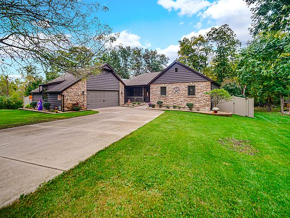 This home has nothing but updates since 2013. The home rests in Timber Springs, subdivision in Lowell, IN. You will enter the cul-de-sac, drive up to a freshly painted exterior with new stone work. The covered front porch is very welcoming. A 2.5 car attached garage faces sideways. The landscaping sets this home off in the front and back. Exterior has decking wrapped around one side and across to the back of the home. There is a pool and hot tub set in the decking. The decking reaching the back of the home has plenty of storage underneath. When you get around to the back you will find a public pond, that has been maintained by the current homeowners, with an aerator to keep the water clean. There is also a shed in the back yard, with electric, for more of your storage needs. You have to see it to appreciate it. The inside has many updates, from the tile flooring, all new Anderson windows throughout, new interior doors and trim, maple cabinets, quartz counter tops and black stainless-steel appliances (all stay). The laundry is on the main level, an exterior door from the deck by the pool and hot tub goes to a 1/2 bath. The primary bedroom has its own bathroom, with a soaker tub, and an exterior door that goes out to the deck in back. Two other bedrooms share a full bath. The basement has a current office and bonus room as well as a very large family room for fun. The family room has two passive-active French doors that walk out to back yard/pond. There is a 3/4 large bath also in the basement with a closet. A truly great find in Lowell, you will want to see this one.