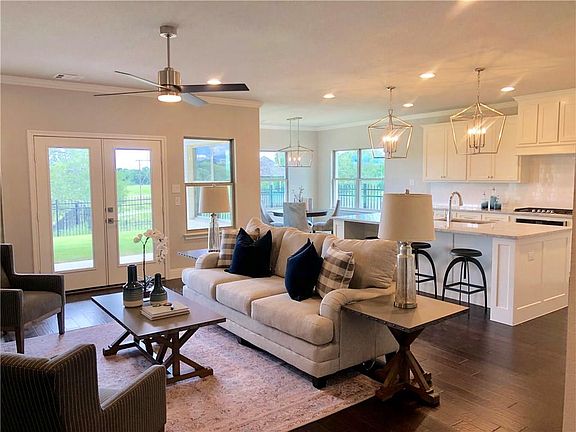 Last new construction property available in gated River Heights! Immediate and private neighborhood access to the Trinity Hike and Bike trails; within walking distance to the restaurants and area attractions of the River District. Minutes from downtown and an incredible location on the west side. This mostly one level home features last river front site, four bedrooms, two full baths, a jack and Jill bath and a powder bath. 3 beds on main level and one up, could be a game room. Open living kitchen and dining plan allows for fabulous entertainment and a rear covered patio facing the river extends this area even more. Three car garage, and upscale finishes throughout. Flex space for office or dining. Must see!