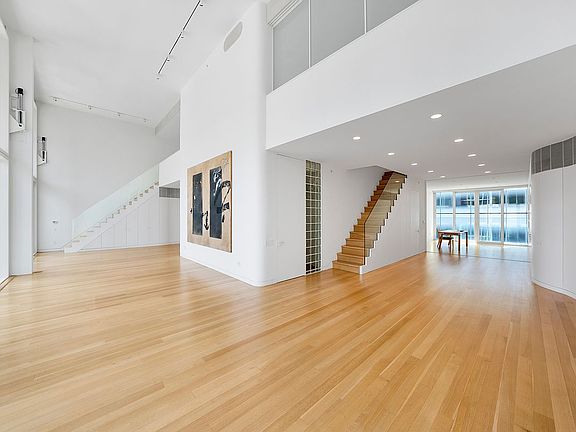 With soaring 20’ ceilings and incredible 20’ tall retractable motorized glass walls, this duplex loft transforms into a spectacular “open-air” pavilion perched amidst contemporary architectural masterpieces in the foreground and iconic Midtown skyscrapers beyond. Expansive 48’ loggia terrace and 4 balconies.