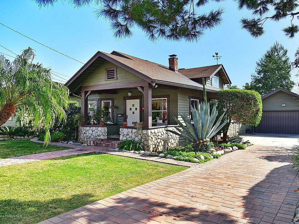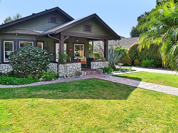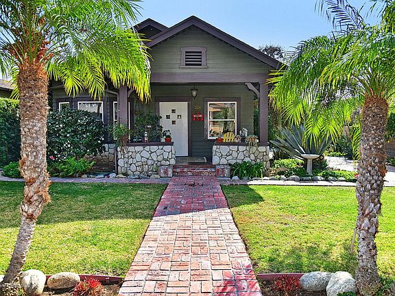 Relax on the front porch of this delightful Craftsman home built in 1912. Cozy up to the fireplace in the living room that boasts original wood flooring while natural light fills the room. The updated kitchen has a breakfast area and a vintage Wedgewood stove. The large dining room flows to the spacious family room with wood flooring, high ceiling, a dedicated office or craft area, and a wall of windows offering views of and access to the backyard. There are two bathrooms one of which is brand new and the other has been updated. A full length deck with a cabana is perfect for outdoor dining with family and friends and also features a rejuvenating spa! A private and lushly landscaped backyard is complete with citrus and avocado trees offers, an adorable storage or garden shed and the yard is completely fenced. There is a tranquil Zen garden on the side of the home. The over-sized two car garage with a dedicated 220 outlet will delight any woodworker or car buff. There is copper plumbing, new water heater as of 2018 and the seller has the original building plans! Don't wait to preview this adorable home!
