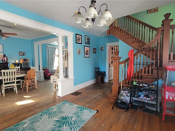 This large home boasts four bedrooms, full bath and half bath, first floor laundry room, large open basement that could be made into living space, and a full attic. As you step inside you will notice the large open entry area that is spacious enough to be used as another room. The dining room, living/family room, and entry area are openly divided by beautiful columns which allow for an open feel yet separation of spaces. The private backyard allows room outside activities. This house is close to many of the city's features including parks, dining and shopping.