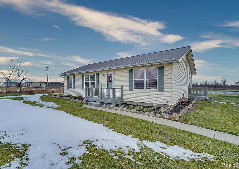 Nice ranch with new sheet metal roof on 10+ acres close to I 69 and I 94. Great room w/vaulted ceiling. Large master bedroom with master bath. Open kitchen w/plenty of cabinet space includes stove, refrigerator, built in dishwasher, and doorwall off nook to deck with view of pond. Over sized 2.5 car garage with plenty of storage/shelving and new sheet metal roof. New vinyl plank flooring throughout kitchen, laundry room, baths, and great room. New granite tops in kitchen and both baths. All windows with new Low E glass. Extra deep crawl space. Hunt, shoot, fish, and ride dirt bikes all on the comforts of your own property.