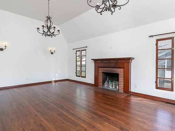 Inside, natural light pours into the living room through a large front window, highlighting the vaulted ceiling, decorative fireplace, and beautifully refinished hardwood floors. The adjoining dining room connects seamlessly to the kitchen, remodeled with timeless style and modern convenience. There are updated cabinets with quartz counters, newer appliances (stove, dishwasher and refrigerator), newer tile floors and backsplash, and a separate utility room with a large pantry closet, access to the side yard, and entrance to the basement. A bright breakfast nook with three walls of windows offers the perfect spot for morning coffee and views of the front yard.