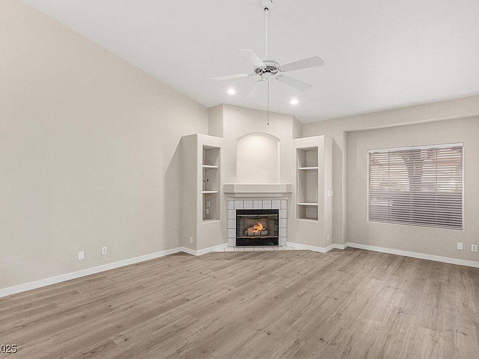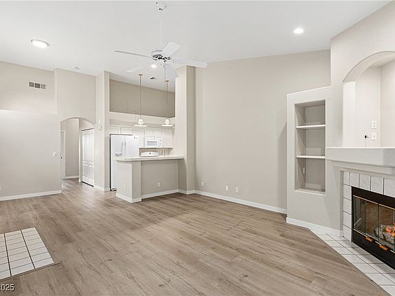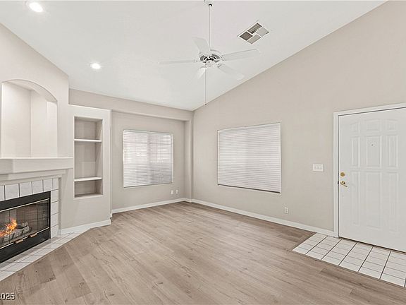 Welcome to this charming single-story home in the gated community of Villa Pacifica. This 2-bedroom, 2-bath residence offers a functional layout with new luxury vinyl plank flooring throughout and soaring vaulted ceilings that create a spacious and airy feel. The primary suite features a large walk-in closet, ensuite bath, and direct access to the private patio through a generous sliding door—perfect for relaxing mornings or quiet evenings. The home also includes a single-car garage, water filtration system, and a low-maintenance lifestyle. Enjoy the community pool and the convenience of a central location with easy access to shopping, dining, and the Las Vegas Strip. Ideal for a primary residence or investment opportunity!