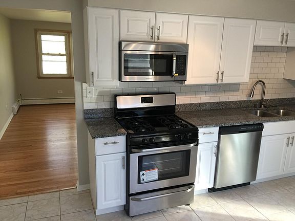 Beautifully rehabbed big 2-bedroom, 1-bath condo located on the top 3rd floor. This spacious unit combines modern elegance with thoughtful updates, perfect for comfortable living. Huge living room with big windows. Fresh custom paint and gleaming hardwood floors throughout. New Modern Kitchen: Stainless steel appliances, Granite countertops, white backsplash subway tile, custom cabinets, tiled floors and a dining area.Two generously sized bedrooms with ample natural light and large closets.Fully renovated Bathroom with a modern vanity, granite vanity top with white sink, medicine cabinet, can lights, beautiful floor and tub tiles, and a Moen shower.