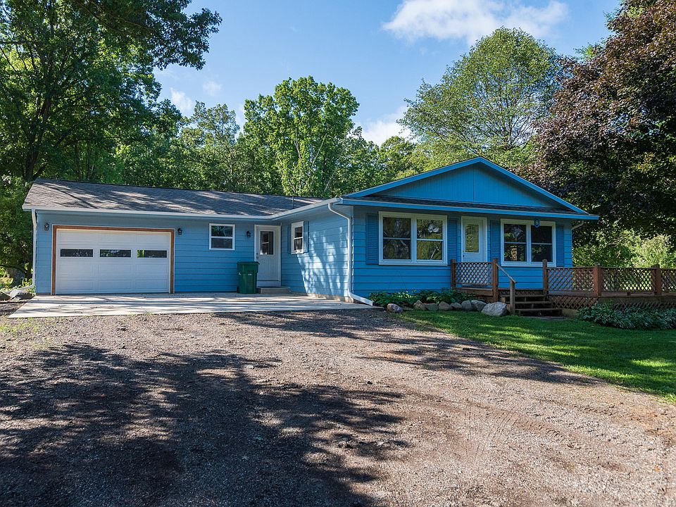 Almost 20 acres, 17 wooded, 3 mow-able This completely rehabbed rancher. is adorable with full basement. Features 3 bedrooms with master suite, main floor laundry washer & dryer included, very large nice mud room with sitting bench, coat hooks, and storage, walk in pantry. All drywall has been replaced and freshly painted, new kitchen with cherry cabinetry, corian counter tops, appliance package, Also features an OUTSTANDING HEATED 60 x 40 new pole building with 2 14 ft over head doors, electric with concrete floor and LIFT, additional 25'x 52' pole barn &, extra garage. 200 amp service, AC, Outdoor wood boiler heats entire home and 60 x 40 pole building, secondary heat electric, newer well, & septic, replaced all plumbing drains, & ROOF.