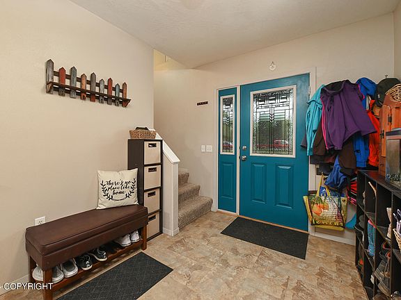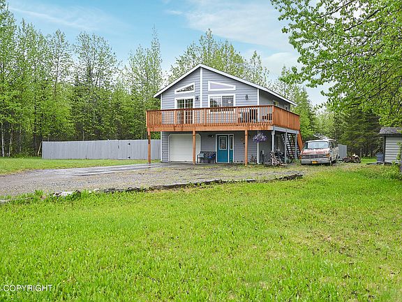 BEAUTIFUL 5* Energy 3bed, 2bath home on a fenced corner lot in Nikiski Amost an acre of park-like setting! Primary bed & bath are on the main level. Two additional bedrooms & full bath upstairs with kitchen & living room- featuring newer LVP flooring. SS appliances along with a newer LARGE wrap around deck. Attached heated garage. Includes newer washer, dryer, & hot water heater. Near school!