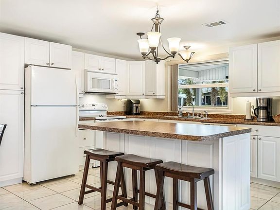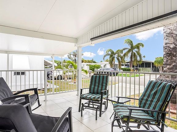 Welcome to your stunning 2-bedroom, 2-bath mobile home in the desirable ALL AGE community of RAVENSWOOD Estates, where YOU OWN THE LAND! This beautifully remodeled home features large carport, tile flooring, updated kitchens and bahtrooms, spacious bedrooms, and 2 lovely outdoor entertaining spaces. Additional storage unit provides extra space for all your needs. AC 2009, water heater 2024, aluminum roof, hurricane shutters, and house was tented 2 years ago to give you peace of mind. Don’t miss this opportunity for a peaceful lifestyle in a fantastic location with LOW HOA of 70/MO.