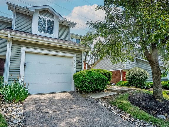 This open, spacious end unit condominium features two bedrooms and two full baths and one-half bath. The two-story living room is graced with a cozy wood-burning fireplace, and the direct entry garage ensures convenience. Step out to the tree-shaded deck to enjoy the private, wide-open view of trees and the pond. The home is filled with natural light all day long, thanks to two skylights and an abundance of windows. Brand new carpet is installed throughout, and the interior is freshly painted. You'll find colorful perennials such as daffodils, peonies, roses, irises, hydrangeas, along with mimosa and cherry trees adorning the property. The HVAC is new in '23, microwave '25 and dishwasher '23. As part of a pool community, the condominium offers convenient access to shopping and dining, easy highway access, and is located within the excellent Mason School District. Additionally, the property provides a great view of Kings Island fireworks, making it a truly delightful place to live.