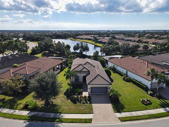 Welcome to 5242 Napoli Run, an exceptional residence located in the highly desirable Esplanade Golf & Country Club in Lakewood Ranch. This beautifully upgraded 2-bedroom plus den/office, 2.5-bath home offers 2,053 sq. ft. of elegant living space and includes a golf-deeded homesite, providing golf membership for two—all included in the HOA fees. Step inside to discover a thoughtfully designed floor plan enhanced by premium upgrades throughout, including stylish flooring, upgraded bathrooms, and custom closets that elevate both comfort and functionality. The spacious gourmet kitchen and open-concept living areas make this home ideal for entertaining or enjoying quiet evenings in. One of the standout features of this property is its expansive screened-in back porch, complete with a built-in outdoor gas fireplace—perfect for year-round relaxation. The backyard offers exceptional privacy with lush landscaping and a tranquil pond view just beyond, creating a serene outdoor retreat. Esplanade is renowned for its amenity-rich lifestyle, featuring a resort-style community pool, tennis courts, pickleball courts, a state-of-the-art fitness center, on-site restaurant, Tiki bar, and beautifully maintained walking paths. With its vibrant community atmosphere and unparalleled amenities, Esplanade remains one of Lakewood Ranch’s most sought-after neighborhoods. Updates completed recently in this home include: New quartz countertops, new showers, LVP flooring in bedrooms and office, custom closets, new light in kitchen/foyer, plantation shutters, new hot water heater (2025) and hurricane screens on all Lanai/porch openings. **Some photos have been virtually staged.