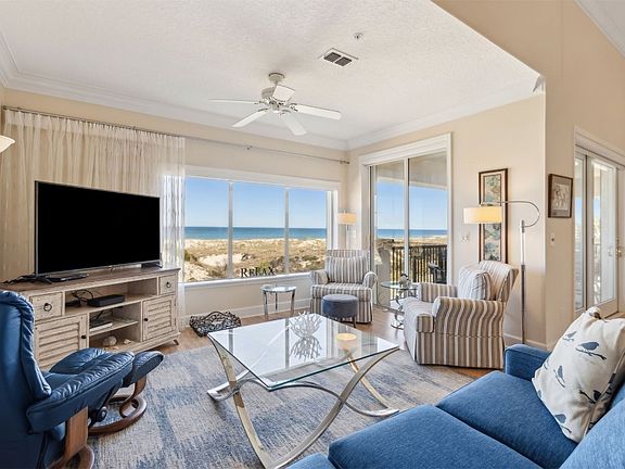 Furnished Ocean Front Condo nestled beneath a picturesque oak tree canopy on the peaceful south end of Amelia Island, this luxurious four-bedroom, four-bath oceanfront condo offers an unparalleled blend of elegance and tranquility. Soaring 20-foot ceilings and expansive oceanfront balconies create a bright, open atmosphere with breathtaking views. Each bedroom features an ensuite bath for ultimate privacy and comfort. Located near The Ritz-Carlton, this exclusive gated community offers a private club membership with top-tier amenities, including tennis courts, pickleball, shuffleboard and two community pools. Experience the perfect balance of coastal beauty and resort-style living.