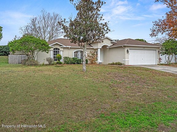Active under contract. -Accepting backup offers. Come see this wonderful home! The split floor plan and spacious living areas make it perfect for entertaining guests or enjoying time with family. The newer roof, HVAC system, water heater, and stainless steel appliances are all great features that add value and convenience to the home. The fact that the sinkhole has been repaired with documentation and the home is fully insurable is also reassuring. Additionally, the proximity of the fire hydrant may result in insurance discounts, which is a great bonus. The large lanai is a wonderful place to relax and enjoy the beautiful Spring Hill neighborhood. Overall, it is a move-in ready home that would make a great place to call your own.