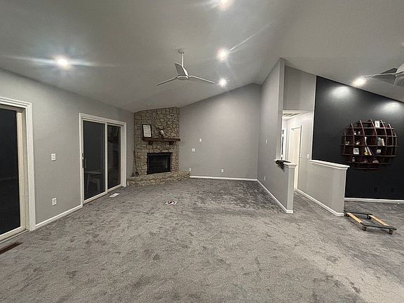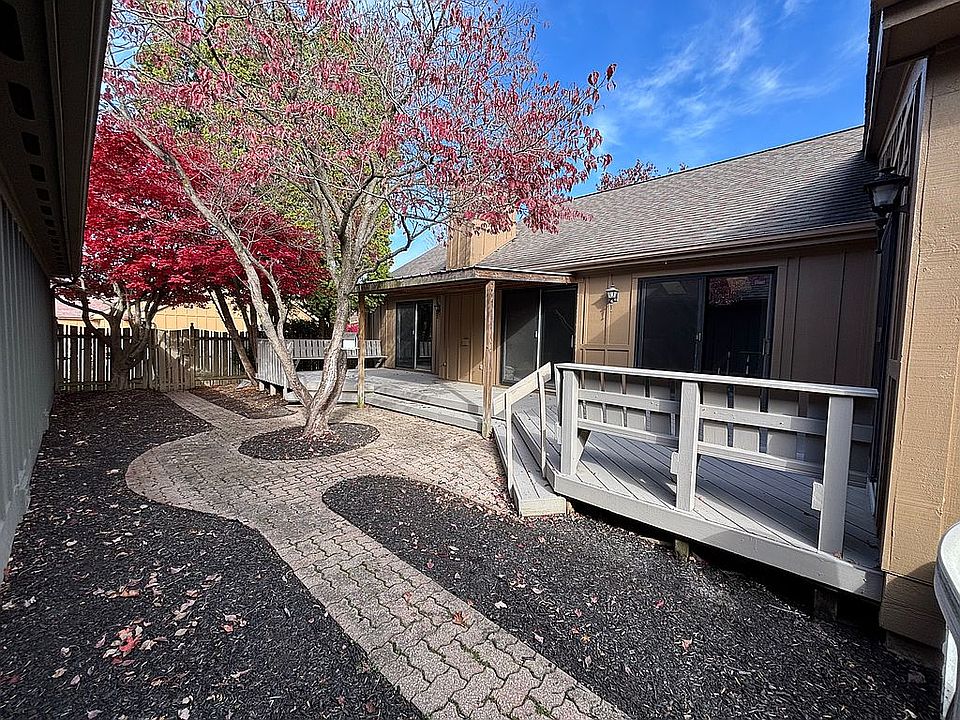 Open patioGreat room with fireplaceSunny breakfast areaPrivate deck areaWood deckWelcoming front porchVaulted ceiling