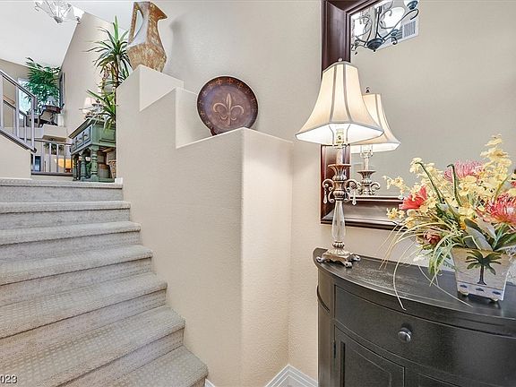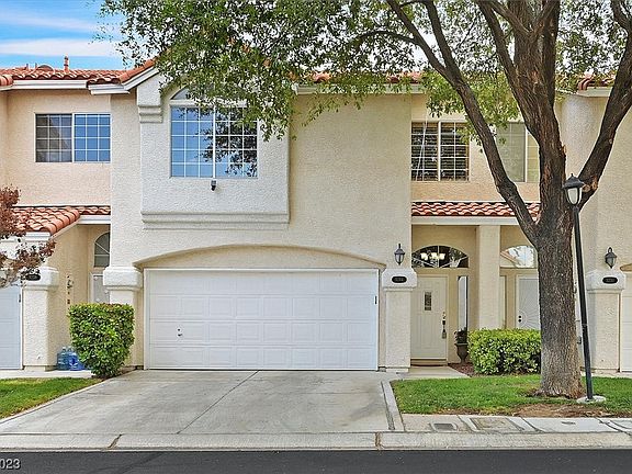 WELL GROOMED, QUAINT GATED COMMUNITY WITH POOL & SPA, LOCATED JUST MINUTES FROM ALLEGIANT STADIUM, T-MOBILE ARENA, AND THE LAS VEGAS STRIP. 2 BEDROOMS + 3RD BEDROOM LOFT OPTION, 3 BATHS, 2 CAR GARAGES BOASTING OVER 1800 SQ FT OF OPEN LIVING SPACE. VAULTED CIELINGS, LED LIGHTING THROUGHOUT, NEW CHANDELIERS, NEW TOILETS, CUSTOM VANITIES IN BATHROOMS, RENNOVATED WALK IN SHOWER IN MASTER, DESIGNER MIRRORS, AND FRESHLY PAINTED TEXTURED CIELINGS. NEW DESIGNER PLANK TILE DOWNSTAIRS WITH PLUSH DESIGNER CARPET UPSTAIRS. A DREAM KITCHEN WITH CUSTOM CABINETS, GRANITE COUNTERTOPS, AND YOUR OWN WALK IN PANTRY WITH PLENTY OF STORAGE SPACE. STEP INTO YOUR OWN PRIVATE PATIO WITH LUSH GREEN LANDSCAPE AND A CUSTOM HEARTHSTONE FIREPLACE TO ENJOY THE BEAUTIFUL SUMMER NIGHTS! WATER AND SEWER ARE INCLUDED IN THE HOA DUES. HARD TO FIND SUCH A TREASURE BELOW 400K. THIS HOME HAS IT ALL FOR SOME LUCKY BUYER!!!