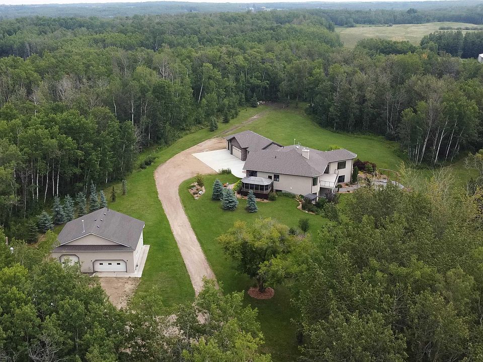 INCREDIBLE PROPERTY! WALKOUT BUNGALOW ON 19.89 ACRES WITH AN AWESOME 30X40 SHOP! Amazing treed setting and located only 10 minutes from Sherwood Park! Featuring an open concept with 2515 square feet plus FULLY FINISHED BASEMENT. An abundance of natural light and high quality upgrades throughout. STUNNING KITCHEN with marble countertops, gorgeous cabinetry and stainless steel appliances. Living room with fireplace & handscraped hardwood flooring. Large dining area, an open family room and sun room. GORGEOUS ENSUITE and walk-in closet in The Primary Bedroom. Massive deck with hot-tub and gazebo. Amazing basement with 4 BEDROOMS, Rec Room, flex area, Theatre Room and utility room plus tons of storage space. Fabulous patio with firepit area. Central A/C & triple pane windows. Cistern with CITY WATER trickle system, Bio treatment septic system, hydronic heating system and a fish pond that you can swim in! The OVERSIZED 4 CAR GARAGE is the cherry on top! Visit REALTOR® website for more information.