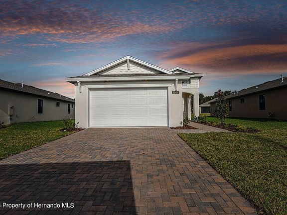 Welcome to the Cascades at Southern Hills, a peaceful gated 55+ community. This 302 model has the Coastal Elevation and is a 3 bedroom, 2 bathroom home PLUS a bonus flex room or office. It is an open concept floor plan with all the upgrades. The kitchen, great for entertaining, includes a large island with breakfast bar, 42'' soft close cabinets, stone countertops and large pantry. The gas stove top and range is a highlight for the aspiring chef. Ceramic tile in the main living spaces and wet areas. The primary bedroom is equipped with a spacious walk-in closet and an en suite bathroom with dual sinks and a water closet. The dining area has large 8 foot sliders that lead out to your covered lanai. Community amenities include a private clubhouse with sparkling pool, fitness center, pickleball courts, bocce ball courts, horseshoe pits, small walking path and meeting area with kitchen. The clubhouse and community are surrounded by nature with opportunity to see a variety of wildlife. All this is tucked away from the hustle and bustle, but minutes from downtown Brooksville, 30 minutes to Pine Island and Weeki Wachee state park and 45 minutes from Tampa international airport. Cable, internet and landscaping maintenance are also included! Call today for your private tour and walk through our model home!